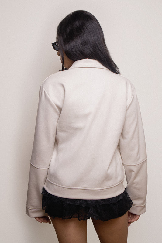 Sold outSuede Zip-up in Vanilla Cream