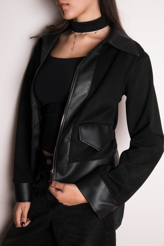Sold outSuede/Leather Jacket in Black Honey